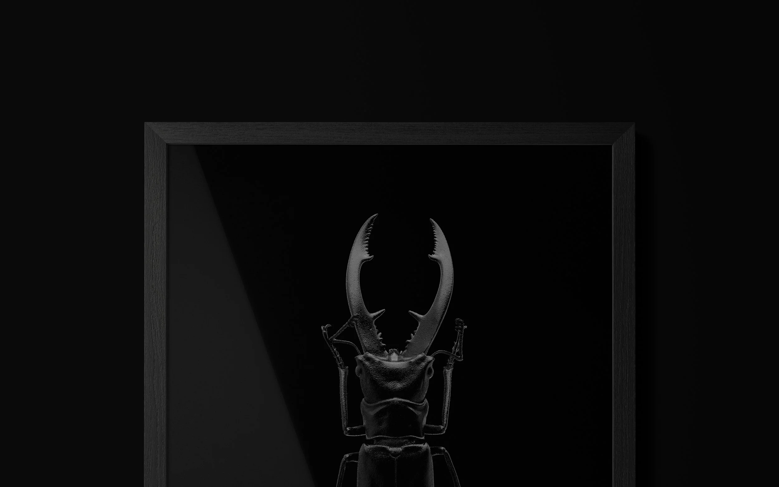 Na coleção Total Black, exploro o contraste absoluto e a dramaticidade do fundo negro, onde cada inseto emerge quase como uma escultura viva. A ausência de distrações reforça formas, volumes e detalhes, criando imagens de forte impacto visual e elegância minimalista.